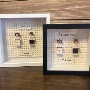 CUTE Han Solo and Princess Leia “I Love You” Lego minifigure shadow box
